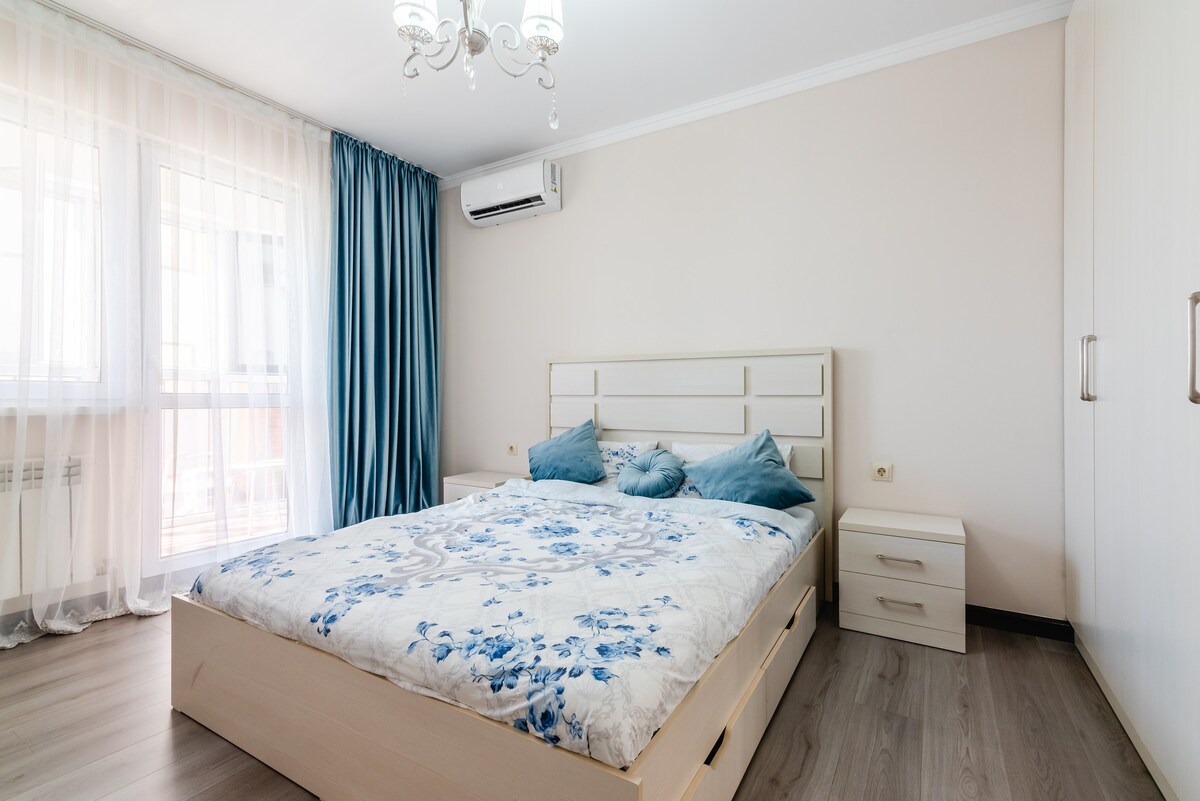 ¡Te damos la bienvenida a Almaty! Alquilamos un apartamento acogedor y espacioso de 3 habitaciones ubicado a solo 2 minutos a pie del aeropuerto, ideal para huéspedes que visitan la ciudad, viajeros de negocios y familias. El piso tiene: • Renovación moderna y reciente • Mobiliario nuevo y elegante • Sábanas perfectamente limpias y toallas suaves • Cocina totalmente abastecida • Absolutamente limpio y ordenado Para viajeros de negocios: • Ofrecemos un paquete completo de documentos oficiales. • Trabajamos oficialmente.