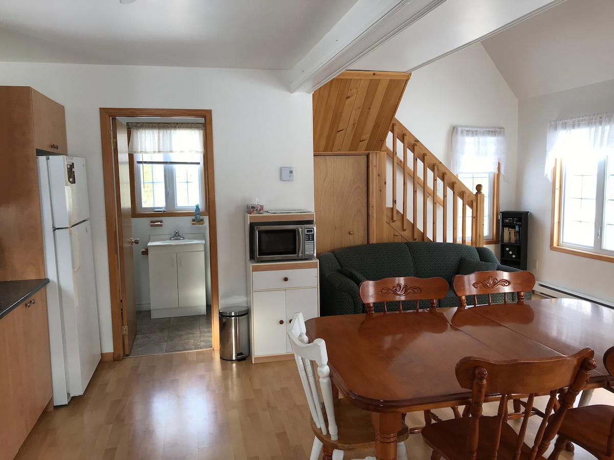 Amplio, lujoso y moderno loft en el corazón de la hermosa isla de Orleans. A 15 minutos del centro y a 20 minutos del Mont Ste-Anne y su estación de esquí. Suelos climatizados, cocina grande y totalmente equipada, comedor, sala de estar y dormitorio con colchón tamaño queen. Es un loft, por lo que todo está en una zona abierta. Una cortina separa el dormitorio de la sala de estar. El café, así como jabón y champú están disponibles.