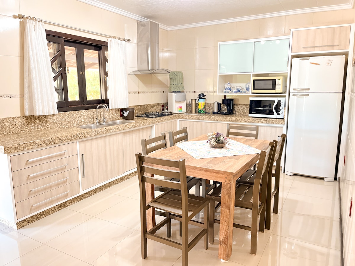 Relájate con la familia en esta casa tranquila. Fondo de la calle, a 20 minutos a pie del centro de Gaspar. Amplio espacio. Garaje para 3 coches cubiertos, pudiendo quedarse más en el acceso. Muros altos, cámaras de seguridad. Calle pavimentada, wifi, autoservicio, Uber en la puerta. Panadería y mercado cercano. Perrera, tendedero, patio. Cerca de Br470 con fácil acceso a todo Vale do Itajaí. A 20 minutos de Bnu, a 30 minutos de las playas, Beto Carreiro World, rutas de agua, pueblos trentinos y alemanes. Checkin y checkout flexibles.