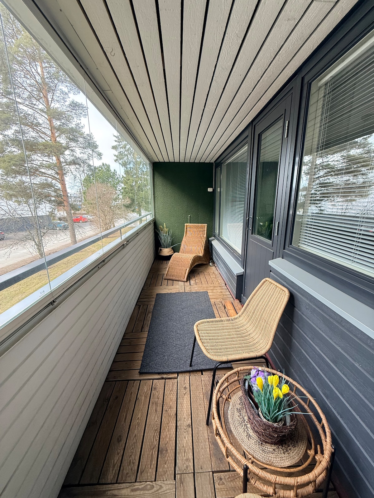 Bonito y limpio estudio con balcón acristalado a unos 3 km del centro de la ciudad y de la estación de tren. Alójate en este destino popular los fines de semana de verano (por ejemplo, Provinssi, Tangomarkkinat). También puedes instalarte aquí por un período de tiempo más largo, por ejemplo, para los días de trabajo o de estudio. Uno ve un entorno poco interesante, el otro con impresionantes terrenos para correr. K-market y ruta de autobús cerca. Relájate en este lugar sereno y cómodo 😊