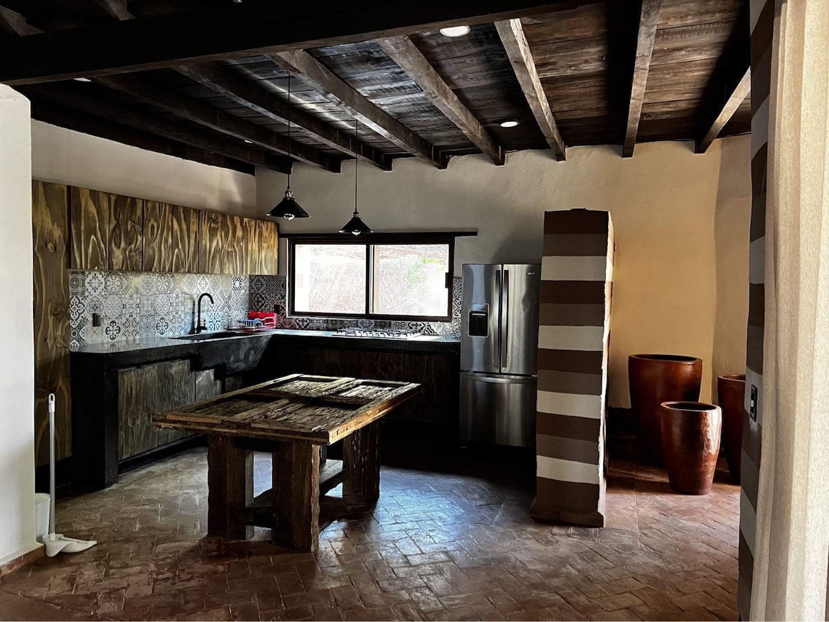 Relájate con toda la familia en este alojamiento donde se respira tranquilidad al estar rodeado de 30 mil mts cuadrados de naturaleza. Cuenta con frigobar, sala completa, cocina integral, refrigerador, microondas, licuadora, patio de servicio con lavadora, salón de fiestas, un tablero de básquetbol, área boscosa y árboles frutales como manzana, granada, pera y níspero, es una propiedad completamente privada con acceso a la carretera federal a 20 mts de la entrada, totalmente pet friendly.