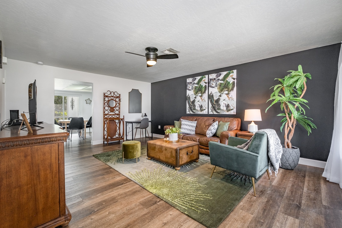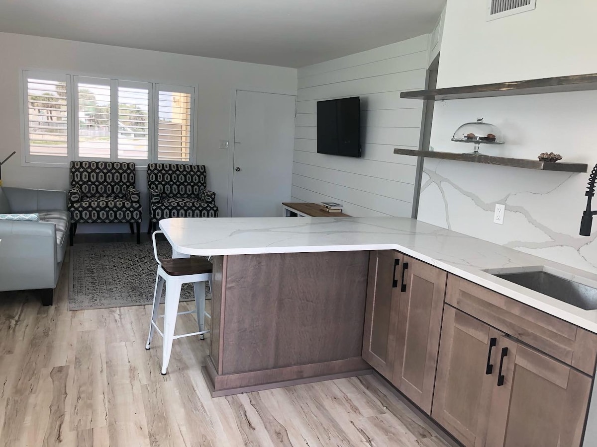 Green Mango es un dúplex reformado con encanto. Este adorable espacio cuenta con limpieza, suelos de terrazo recién pulidos, ventanas resistentes a los impactos (de seguridad) y persianas opacas, lo que garantiza una noche de sueño tranquilo. La moderna casa adosada de estilo minimalista está convenientemente ubicada a solo 3,8 millas de la playa, a 73 millas de Disney World y a 13 millas del USAA Space Coast Athletic Complex. Lavandería gratuita entre unidades.