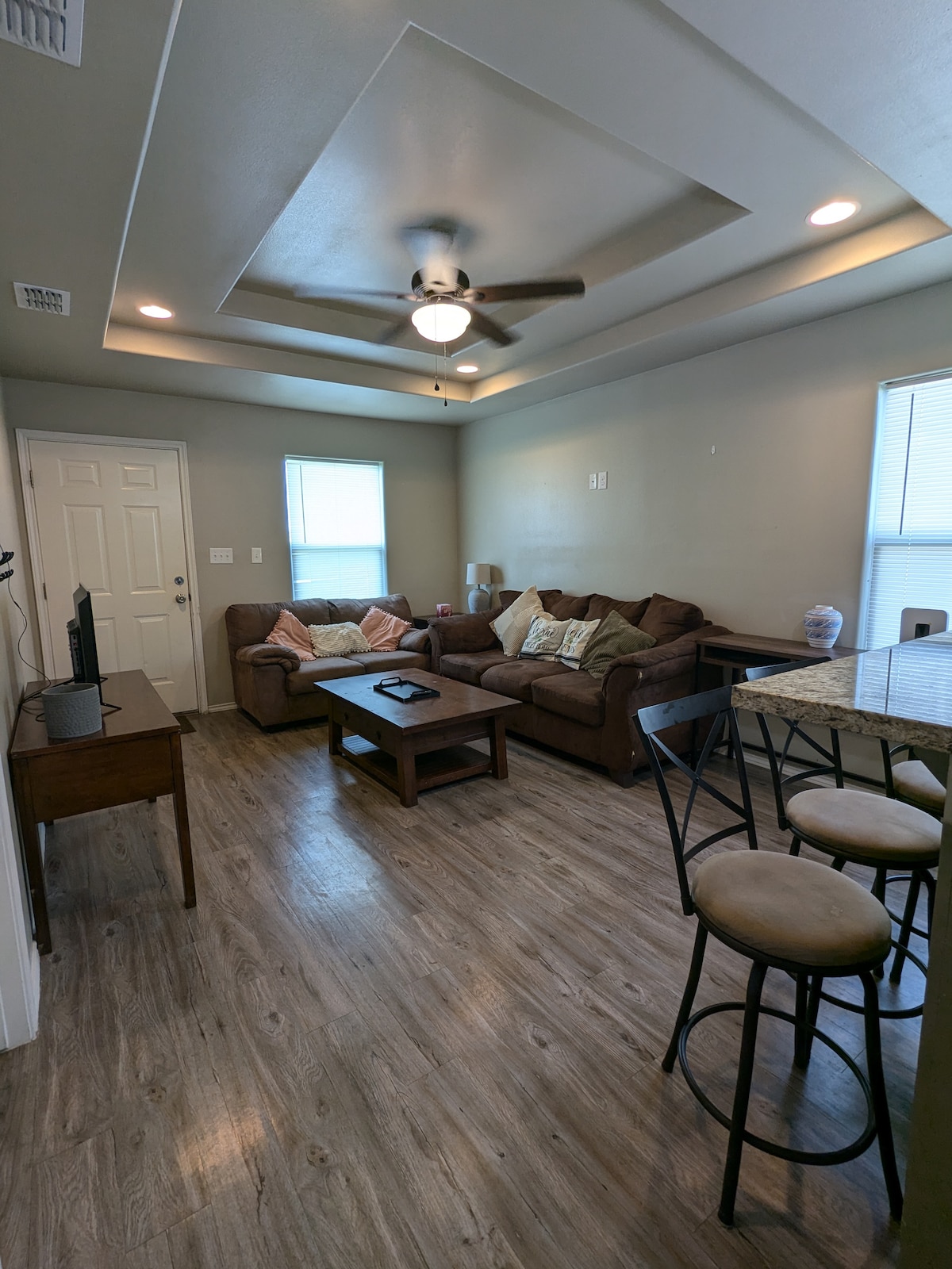 El Bluebonnet Peak está totalmente equipado para ser tu hogar lejos de casa. Una casa dúplex bellamente moderna ubicada cerca de las principales tiendas, restaurantes y a 30 minutos de SPI. Ofrece un ambiente relajante con una espaciosa casa de 3 dormitorios y 2 baños y un sendero al lado. La cocina está amueblada con electrodomésticos de acero inoxidable, encimeras de cuarzo y, por supuesto, ¡todo lo que necesitas para tomar café todas las mañanas! Se ofrecen servicios e incluyen una sala de lavado privada para tu uso personal.