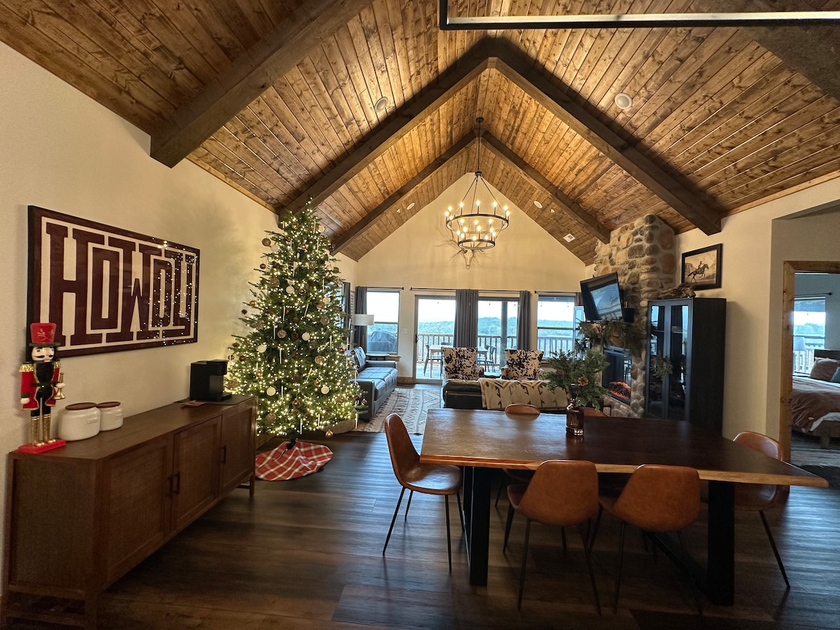 ¡Te damos la bienvenida a The Tree + House en Indian Point! Esta casa del árbol de lujo personalizada fue construida pensando en la comodidad y la relajación. Perfecto para un máximo de cuatro huéspedes, está rodeado de bosque y lleno de luz natural desde las ventanas del piso al techo que muestran impresionantes vistas del lago Table Rock. Te sentirás escondido en tu propio refugio privado, pero aún así estarás a solo minutos del agua y de Silver Dollar City. Es la mezcla ideal de naturaleza tranquila y estilo moderno.