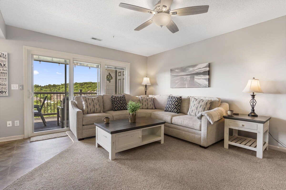 Welcome to Rolling Hills Condo — Your Escape to Tranquility and Relaxation! This spacious 2-bedroom penthouse in Indian Point offers breathtaking views of Table Rock Lake. Located in a quiet community, just minutes from Branson's best attractions, this condo blends comfort and convenience-easy access to all the excitement, with the option to unwind in a peaceful setting. This condo features a king, queen, twin bunk beds, and a pull-out sofa for ample space. Perfect for families or friends!