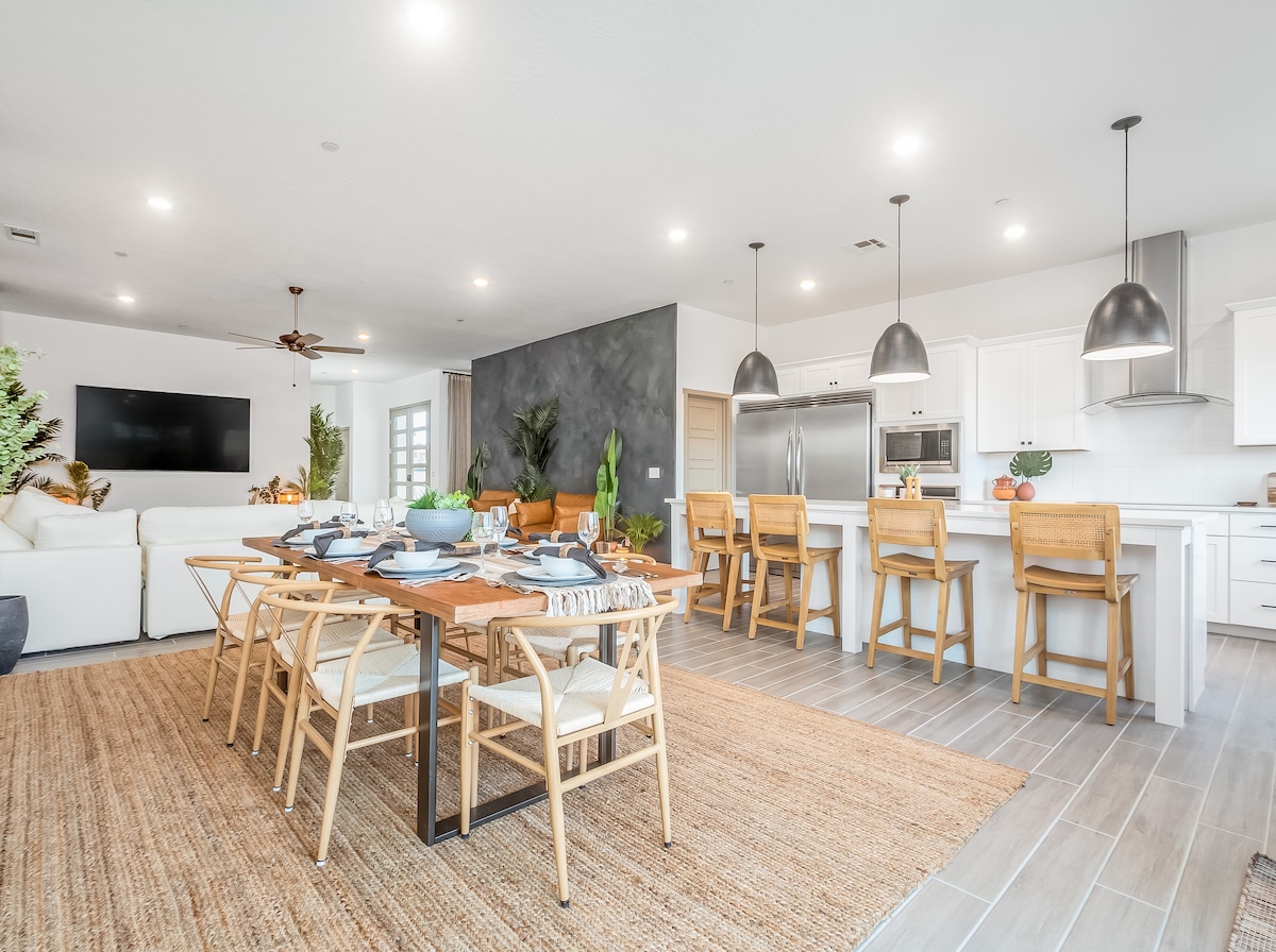 ¡Relájate y desconecta en tu oasis privado en esta casa moderna de mediados de siglo recién remodelada! Al entrar en esta casa de 3 dormitorios y 2 baños, te cautivará su elegante arquitectura de mediados de siglo y su moderna decoración retro que seguro te inspirará. Hemos creado un lugar acogedor, elegante y relajante donde tú y tus invitados podéis relajaros y descansar en el espectacular patio trasero o simplemente pasar el día junto a la acogedora chimenea mientras disfrutas de algunos vinilos.