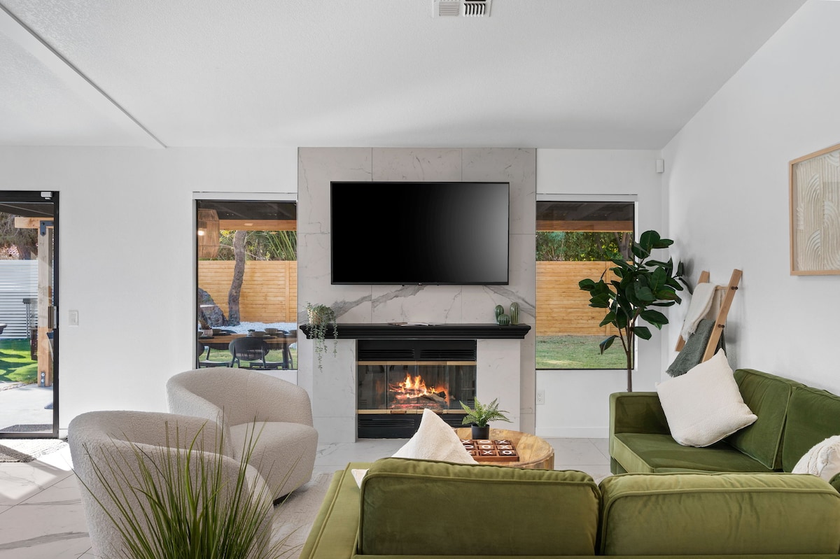 Bienvenido a Desert Social, ¡tu mejor oasis de vacaciones! Perfecto para grupos de todos los tamaños, este elegante refugio junto al lago ofrece lujo, diversión sin fin y fácil acceso a festivales, tiendas, restaurantes y Palm Springs. Con una impresionante zona al aire libre, piscina de agua salada, spa, sauna, sala de juegos, minigolf, juguetes, cine en casa y mucho más, hay diversión para todos. Senderismo a 3 minutos en coche. Tienda de comestibles a 5-10 minutos en coche Campos de golf a 2-7 minutos en coche Mejora tu estancia con diversión y elegancia; detalles a continuación