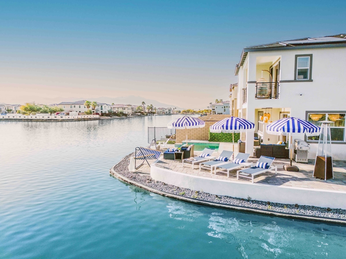 WOW! Villa Paradiso is a real paradise with a privileged location right in the middle of the lake! With its soft, calming bohemian and coastal inspired touches and Italian romantic theme from the magical Amalfi Coast, this lakefront home will sweep you off your feet! Come and enjoy your luxury waterfront patio with an infinity spool = pool + spa! The house is located in a 24-hr guard-gated community! Few min away from Coachella & Stagecoach festivals, Indian Wells Tennis Open and Palm Springs.