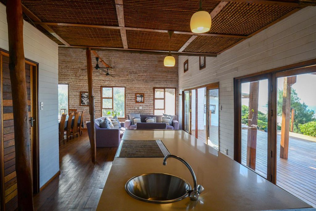 En la parte delantera de una duna ventosa y bordeada de palmeras, esta espaciosa, amplia, bellamente diseñada, rústica por fuera y bien equipada casa de madera tiene unas vistas espectaculares sobre la playa de Barra. Hecha de materiales locales, la casa se integra en los alrededores. En el interior está excelentemente equipada con suelos de palo de hierro, una cocina bien equipada, cómodos colchones, mosquiteras y ropa de cama. Las brisas marinas la mantienen fresca y sorprendentemente libre de mosquitos, incluso en pleno verano. Hay que verla para respirarla y creerla.
