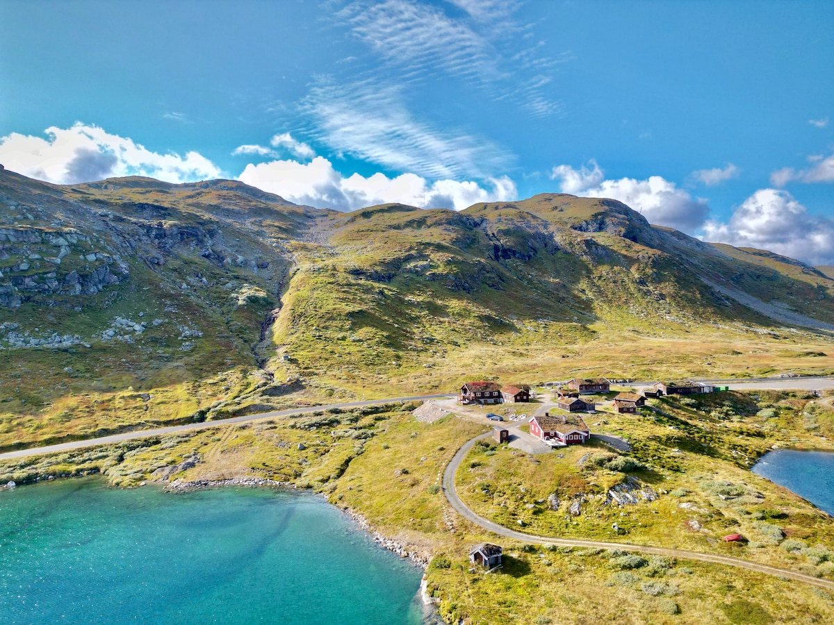 Pequeña casa de vacaciones con vistas a los fiordos y las montañas.