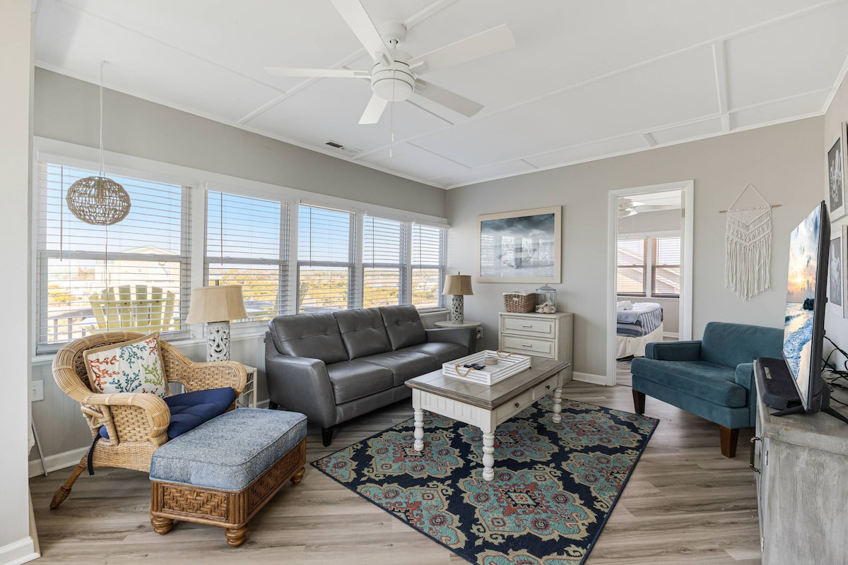 ¡El porche delantero lo dice todo! Vistas panorámicas de una de las mejores playas de Carolina del Norte, con todas las comodidades de un hogar y mucho más. Es una casa de campo de la que te quitas los zapatos en la puerta principal y los recoges 7 días después. Con 4 dormitorios y 3 baños, puedes traer a toda la familia o a un grupo de amigos y tener mucho espacio para socializar y retirarte. ¡La ropa de cama está incluida y las camas están hechas! Solo tienes que traer tu protector solar y toalla y una actitud relajada para disfrutar de todo lo que ofrece Holden Beach.