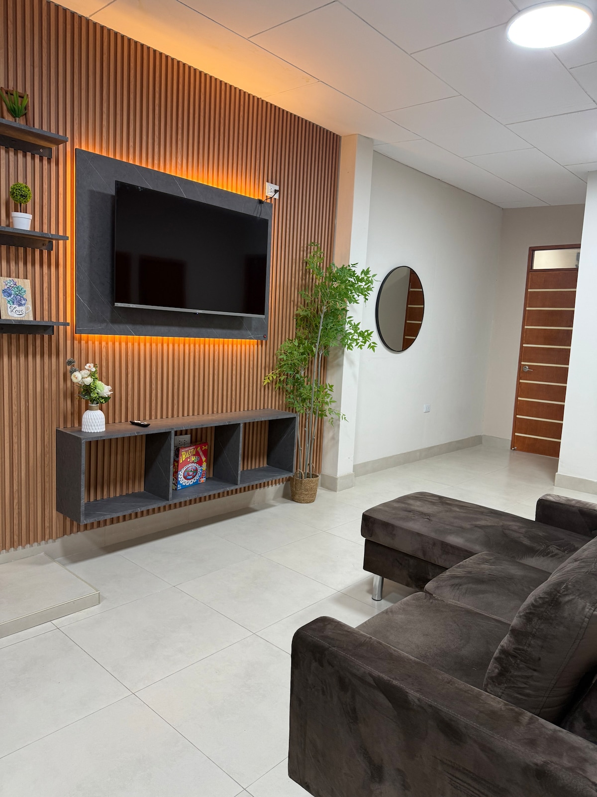 Bienvenidos a nuestro acogedor departamento, perfecto para hasta 4 huéspedes. Disfruten de una habitación con cama 2 plazas y 2 camas plegables adicionales. La estancia cuenta con una sala-comedor y una cocina totalmente equipada (microondas, hervidor, wafflera, etc). Relájense con TV de 50" smart, DirecTV, y naveguen con internet satelital Starlink. Su ubicación céntrica y tranquila lo convierte en el refugio perfecto. A solo 5 cuadras de la Plaza de Armas de Iquitos, cerca de todo lo necesario