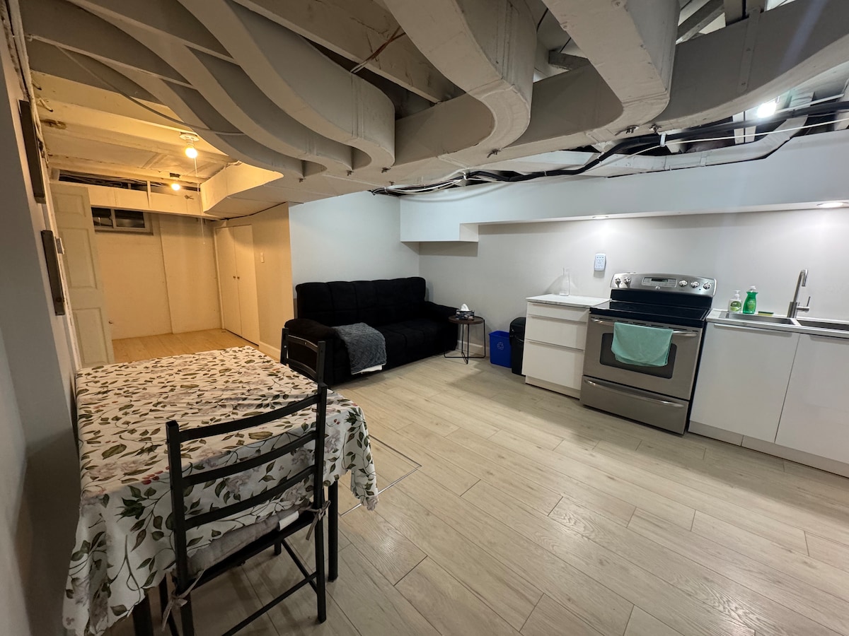 Tranquilo y acogedor apartamento en el sótano de 2 dormitorios, estancias largas bienvenidas. Entrada separada en el patio trasero, uso de la lavandería compartida y estacionamiento disponible, entrada trasera que es muy estrecha o estaciona frente al garaje. Entrada con código de llave para la puerta principal del departamento. Patio al aire libre con barbacoa en los meses de verano. En el interior hay muchos servicios. El autobús se detiene justo enfrente de casa a la ubicación del centro de la ciudad para ir de compras o aquí en un hospital médico a poca distancia a pie.