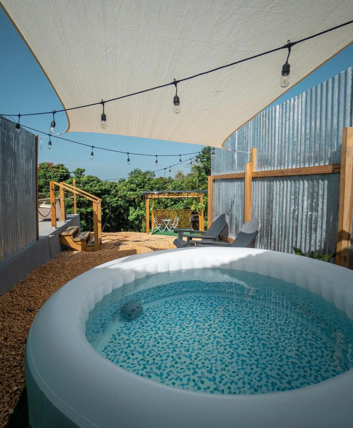 Planea una escapada relajante mientras disfrutas de una piscina privada con terraza, chimenea, proyector de pantalla de 100 pulgadas, cenador y mesa de billar que son exclusivos para los huéspedes de Lunabela. Este alojamiento especial está a solo 10 minutos en coche de la playa y del río Guajataca, y a poca distancia a pie del centro comercial, restaurantes y panaderías, lo que facilita la planificación de tu visita y la exploración de Isabela. La unidad cuenta con cocina totalmente equipada, aire acondicionado, cama tamaño king, wifi, TV, plaza de aparcamiento gratuita, parrilla y juegos de mesa.