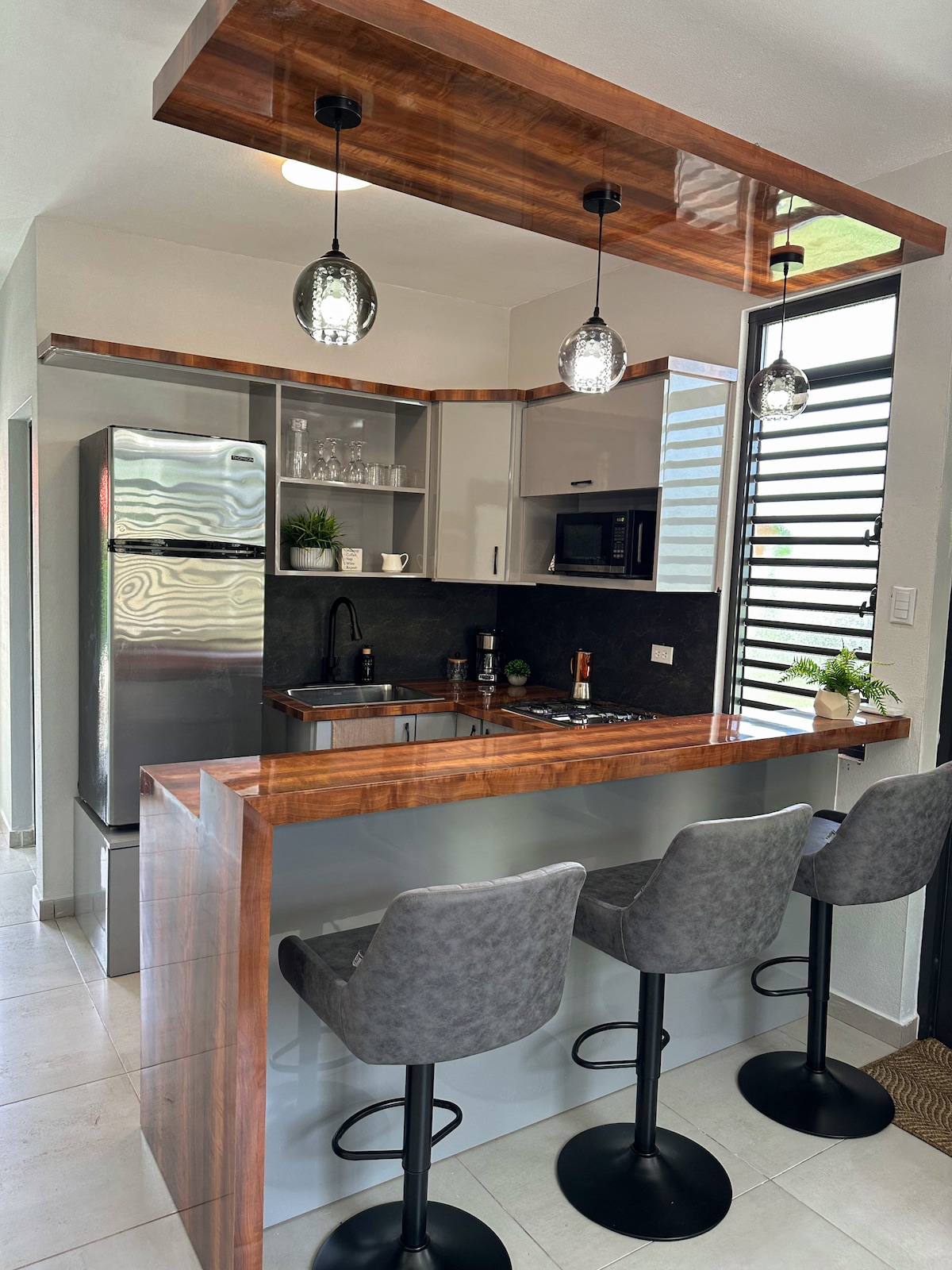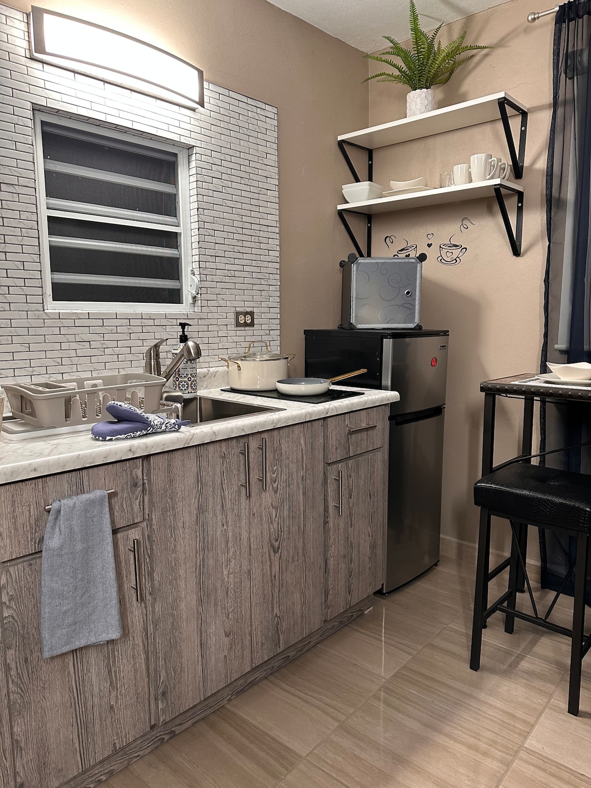Ven y vive todas las delicias de la vida isleña. Encontrarás paz y serenidad mientras te hospedas en este elegante y moderno apartamento tipo estudio y disfrutas de las muchas comodidades. Tu día típico puede incluir un viaje de dos minutos a la playa de Jobos y muchas otras actividades. Luego puedes regresar para disfrutar de una noche romántica en el jacuzzi, jugar al billar o salir a cenar a uno de los muchos restaurantes que se encuentran en las inmediaciones. El apartamento es espacioso, está equipado con todos los servicios necesarios para disfrutar de tu estancia.