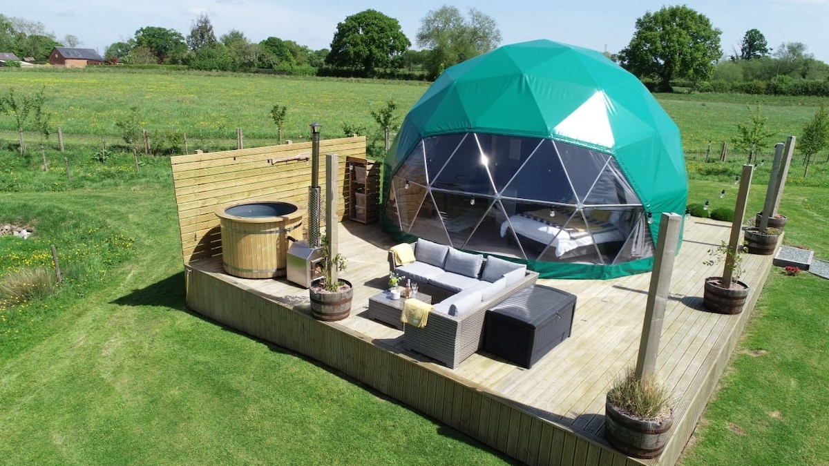 Nuestra cabaña de madera artesanal con baño se encuentra dentro de un pequeño bosque en los terrenos de una granja de ovejas en funcionamiento con una vista ininterrumpida a través del valle en la pintoresca Shropshire. Cuenta con todo lo necesario para retirarte del mundo real, ya sea para una noche acogedora, frente a la estufa de leña o la oportunidad de sentarte y contemplar las estrellas en la terraza. Hay una gran cantidad de paseos justo desde tu puerta, incluso tienes la suerte de tener el Offas Dyke a tiro de piedra de la cabaña.