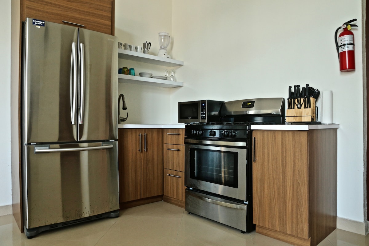 Este apartamento de un dormitorio cuenta con una hermosa vista a la bahía. Está equipado con una cama tamaño queen y una litera completa/doble, tiene un televisor con cable y Netflix, wifi, cafetera, microondas y nevera. Se encuentra a 5 minutos en coche de los mercados y a 10 minutos en coche de la famosa Playa Flamenco. Se encuentra en una zona tranquila y agradable, cerca de otras playas y de la ciudad. Equipo básico de buceo disponible.