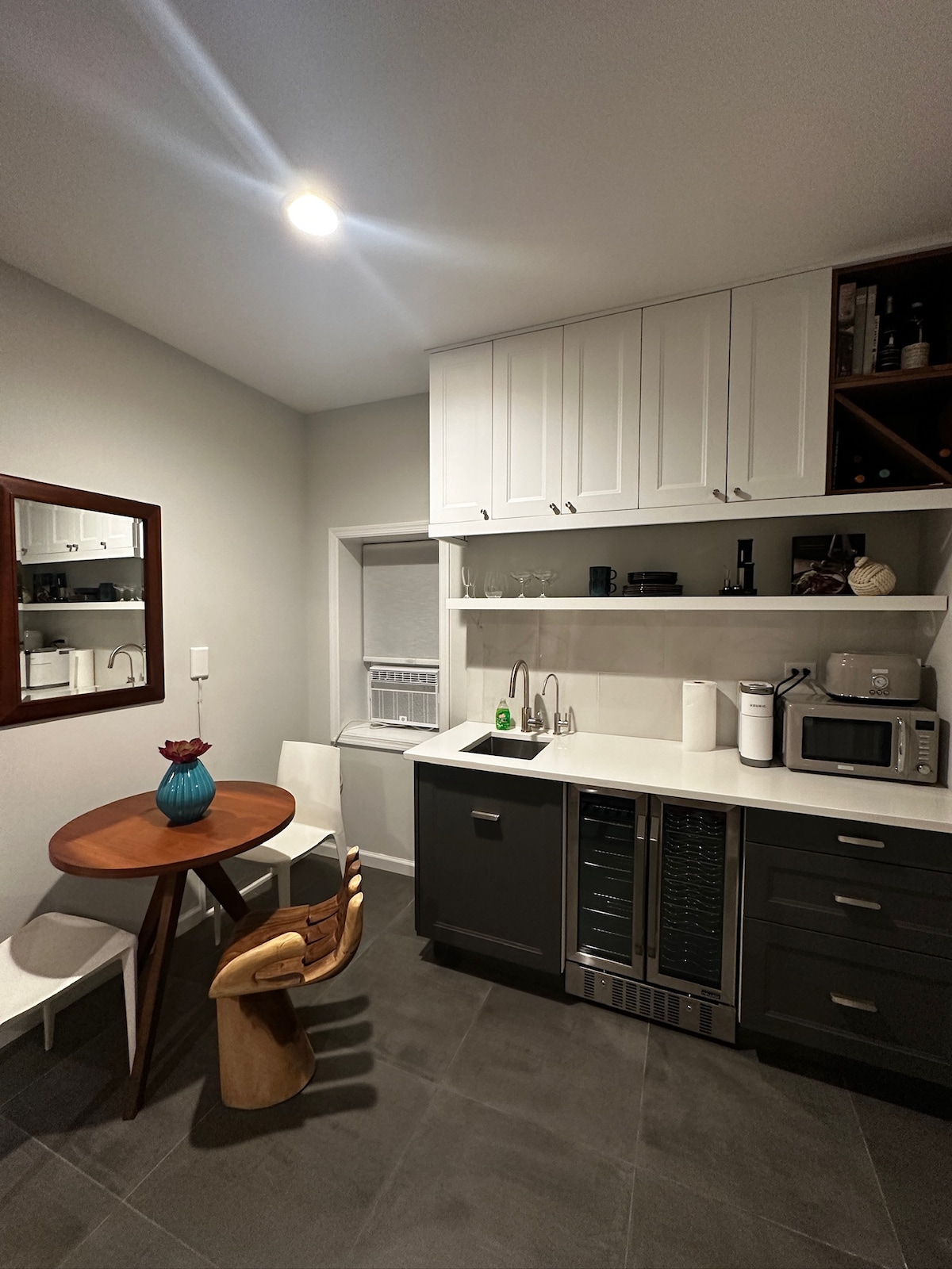 Esta suite de invitados tiene un dormitorio principal con cama tamaño queen y un rincón separado con una cama que se convierte en dos camas individuales. Está convenientemente ubicada a una manzana de la estación de tren LIRR. La playa y el paseo marítimo están a cuatro manzanas a pie y detrás de nuestra calle hay docenas de restaurantes, bares, cafeterías, tiendas de comestibles y farmacias. Estamos disponibles cuando quieras, para garantizar una estancia agradable y relajante.