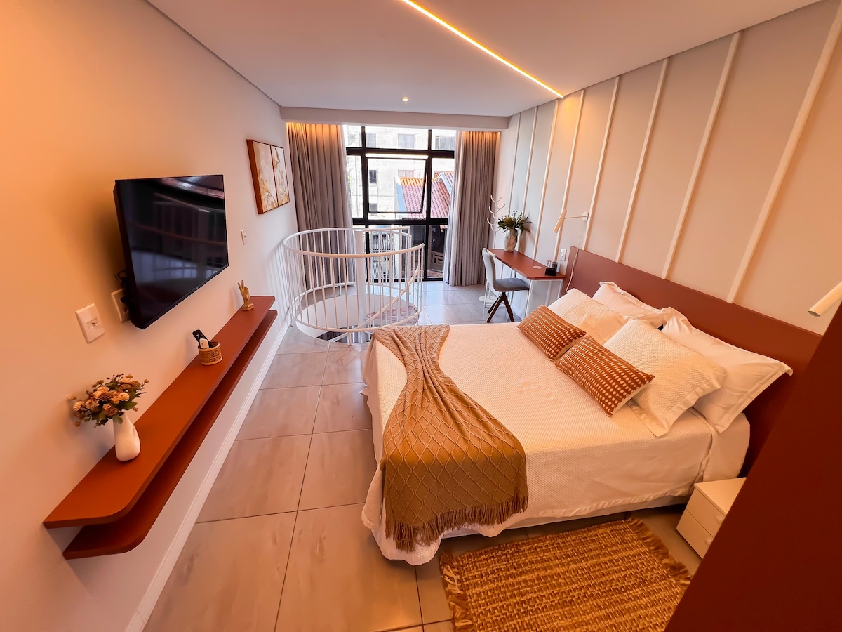 Relájate con toda tu familia, loft moderno, acogedor para parejas, ejecutivos, trabajo remoto, tenemos excelente wifi, ambientes con aire acondicionado. Estamos bien ubicados en la ciudad de Itajai, en el centro de la ciudad, mercados, Centro Eventos y los mejores restaurantes de Beira Rio. Puedes caminar. 2 km a las playas de Molhes, Atalaia, Cabeçudas y 8 km Praia Brava. 2 km Universidade do Vale de Itajai. 12 km Bal. Camboriú y 29 km de Penha Beto Carreiro.
