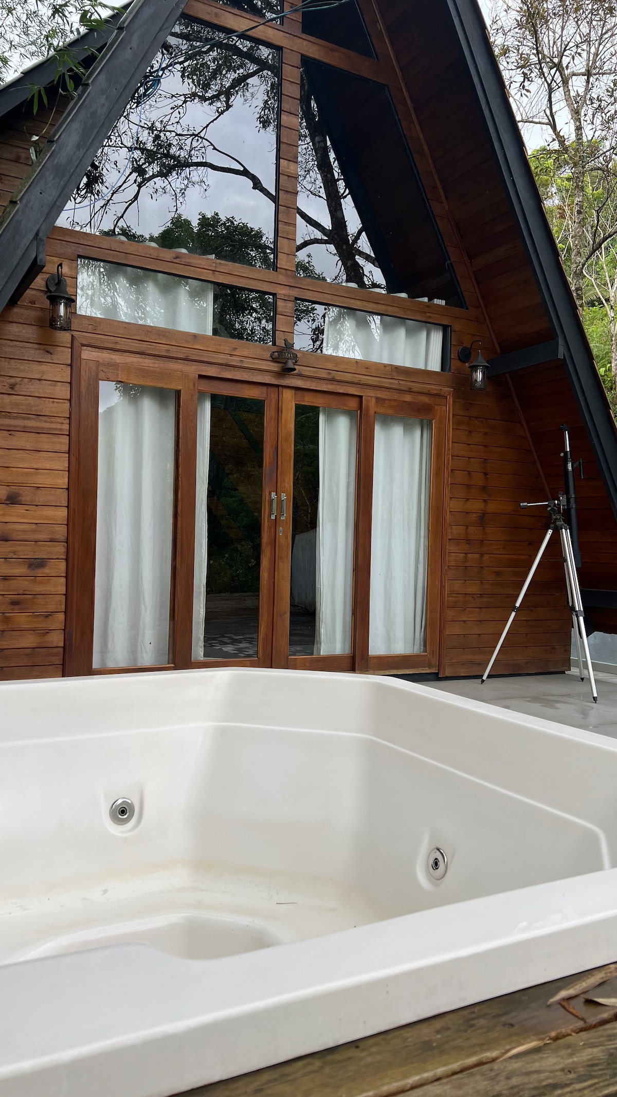 Chalet en el corazón de la naturaleza, con un diseño moderno y acogedor, grandes ventanales que ofrecen unas vistas impresionantes de las montañas. Cuenta con chimenea, barbacoa, parrilla, estufa de leña, jacuzzi junto al sonido del arroyo y cocina totalmente equipada. El alojamiento incluye sábanas y toallas de alta calidad. Situado a 20 minutos de Itajaí y a 30 minutos de Balneário Camboriú, con acceso rápido a BR101. Perfecto para aquellos que buscan relajación y comodidad en un entorno exclusivo y elegante.