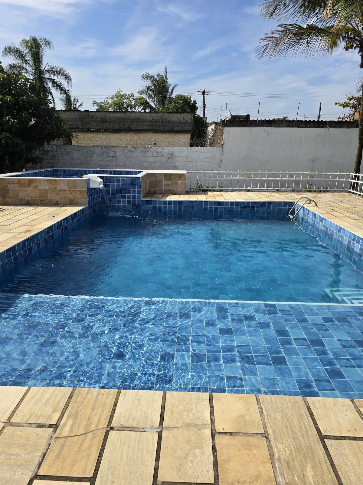 Amplio espacio y tiene: * Piscina con cascada y jacuzzi. *Wifi *Televisor * Área gourmet, barbacoa, refrigerador, congelador, microondas, estufa, freidora de aire, utensilios. *varios juegos de mesa. *pabellón. * habitación con aire acondicionado, dos enrejados y una cama doble. *2 baños. * Jardín del área de Ampla. *Jardín todo iluminado. *esquina para hacer un fuego y una parrilla de piso, ya con pincho/parrilla. *Estacionamiento para tres coches. * lugar tranquilo y seguro, todo con valla eléctrica y monitoreo. .