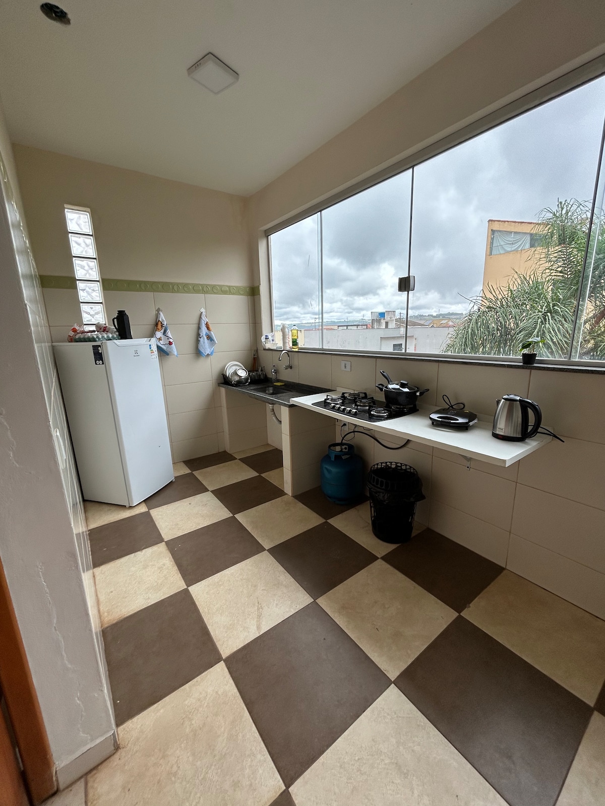 Maravillosa gatita con dormitorio, cocina, baño y lavandería, CON AIRE ACONDICIONADO!! Amueblado Con cama, armario, smart tv, mesa con taburetes, refrigerador y estufa, está en el barrio Jardim Brasil que está cerca de mercados y a 1200 metros del centro y 800 metros del hospital de la ciudad, con paradas de autobús, farmacias, un lugar muy tranquilo!! PODER ATENDER A LOS VIAJEROS PORQUE hacemos CHECK IN AUTÓNOMO!!!