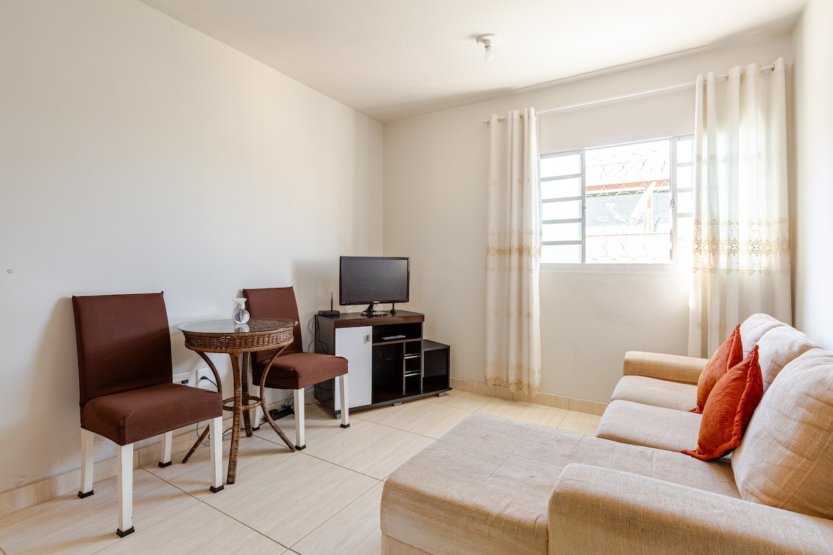 Márcio y Olindina son las anfitrionas. ¡Aire acondicionado! Experiencia loft única con balcón con vistas al atardecer. En el interior, se parece a una cabaña. ¡Ni siquiera parece que estés en la ciudad! Obtendrás un televisor inteligente de 32pulgadas y 500 Mbts de wifi. Llegada: después de las 15:00 Chckout: hasta el medio día. Incluye estacionamiento exclusivo para que lo usen los huéspedes. Si el huésped prefiere, previo acuerdo, puede hacer el check-in de forma autónoma. La llave está guardada en una pequeña caja fuerte que el huésped puede abrir con un código.