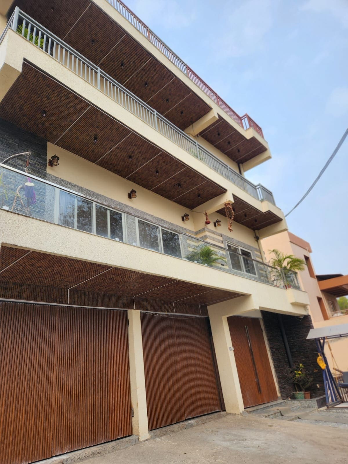 Sala: Televisor Sofá de 5 plazas 3 X Mesa de café Mesa de comedor de 6 plazas Cocina: Microondas Refrigerador RO acuático Cocina modular Comodidades de la cocina Tostadora de pan Habitación en la planta superior: Camas dobles con mesas auxiliares Aire acondicionado en la ventana 1 wifi Dormitorio en la planta baja: Camas tamaño queen con mesas auxiliares. Habitación sin aire acondicionado 1 wifi Baños: 2 x géiseres Adicional: Zapatero Ventiladores y luces de metro en todas las habitaciones y baños Espejos en el baño y el dormitorio