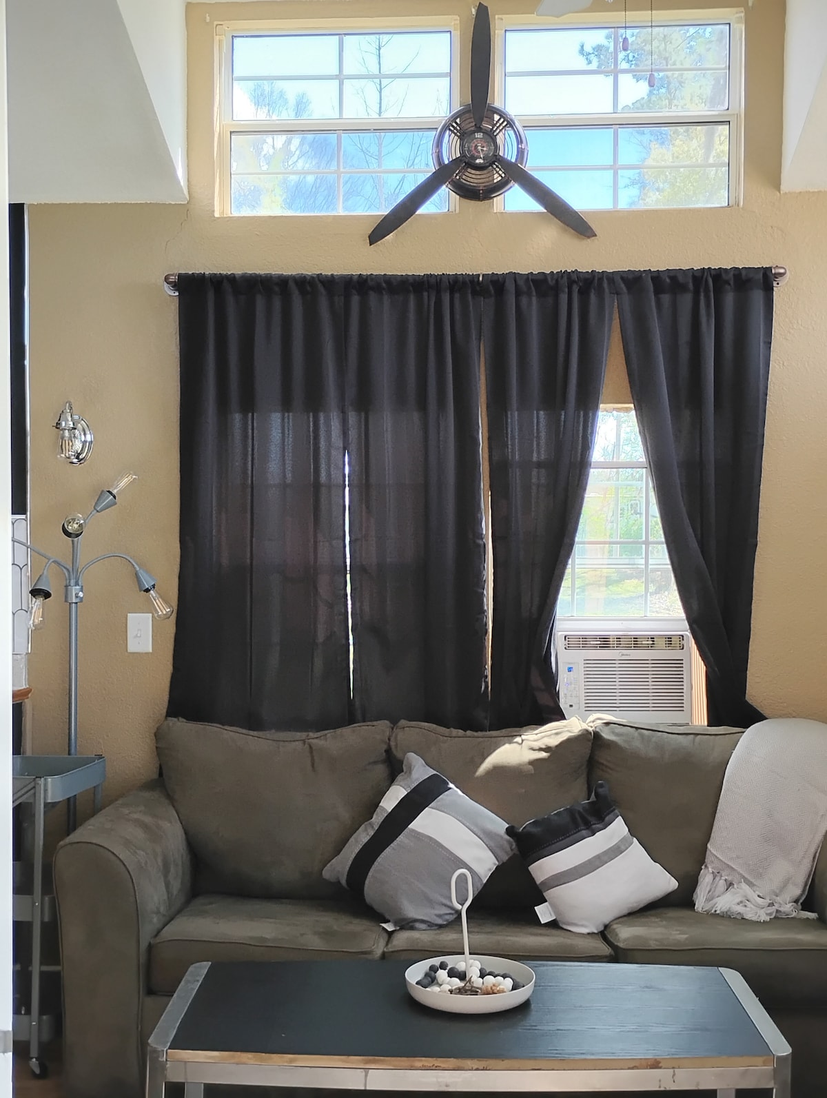 Stay in this unique industrial-style lake cabin just steps from the Chattahoochee River inlet into Lake Seminole. Designed with an urban industrial vibe, the cabin features warm wood, metal accents, a cozy living space, kitchenette, full bath, and loft sleeping area. Perfect for fishing trips, couples getaways, or weekend lake escapes. Enjoy boating, bass fishing, sunsets, and peaceful nature just outside your door.