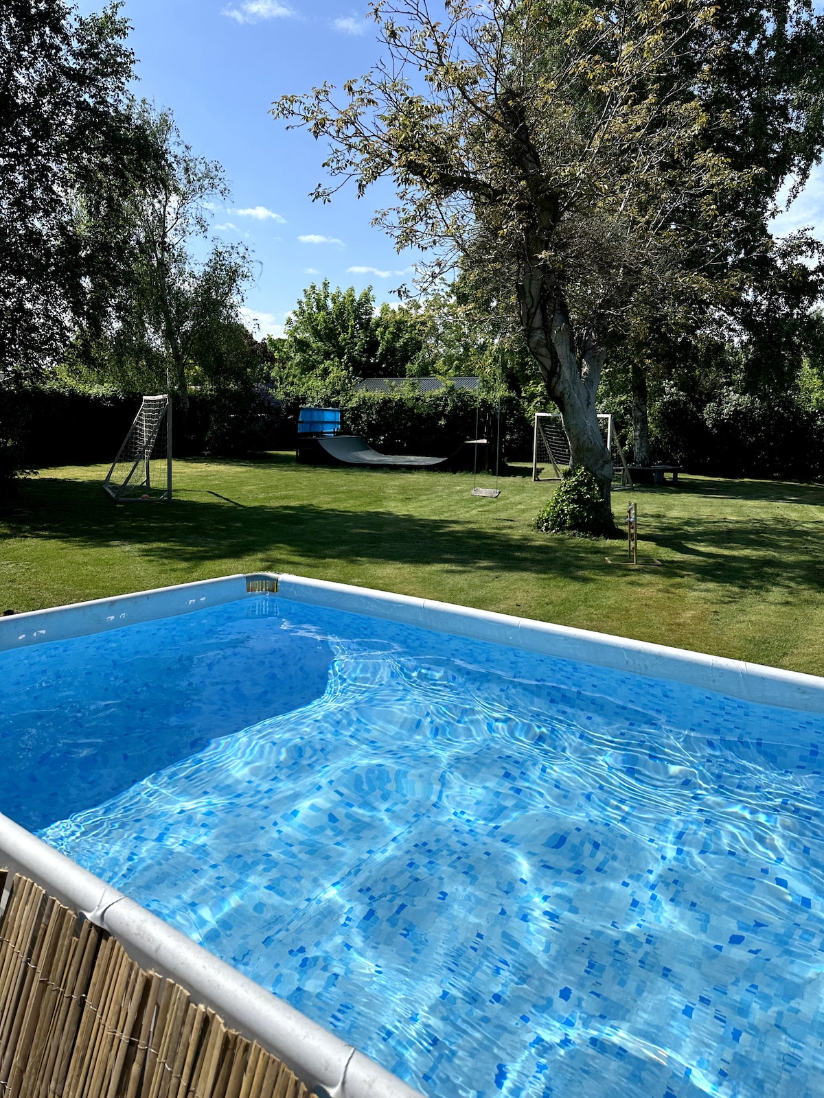 Terraza de 200 m2, piscina, vildmarksbad, trampolín