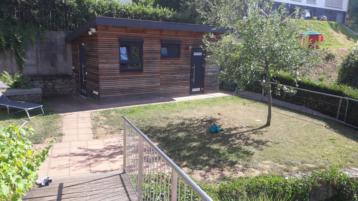 ¡UNA MINICASA EN MEDIO DE STUTTGART-WEST! ¿Caminando hasta el centro de la ciudad de Stuttgart y sigue siendo "tu propia casa de campo en el campo"? ¡Puedes! En la ubicación a media altura del "In neighborhood" Stuttgart-West. Casa de microvivencia (con baño privado/ducha/WC/WiFi/TV) en una ubicación idílica en la ladera. Solo conocemos el ruido del tráfico de rumores. Alarma de polvo fino solo de la barbacoa. En resumen: ¡naturaleza pura! • Sin embargo, está a solo 20 minutos a pie del centro. • Se puede llegar a la parada S-Bahn "Schwabstraße" en 8 minutos.