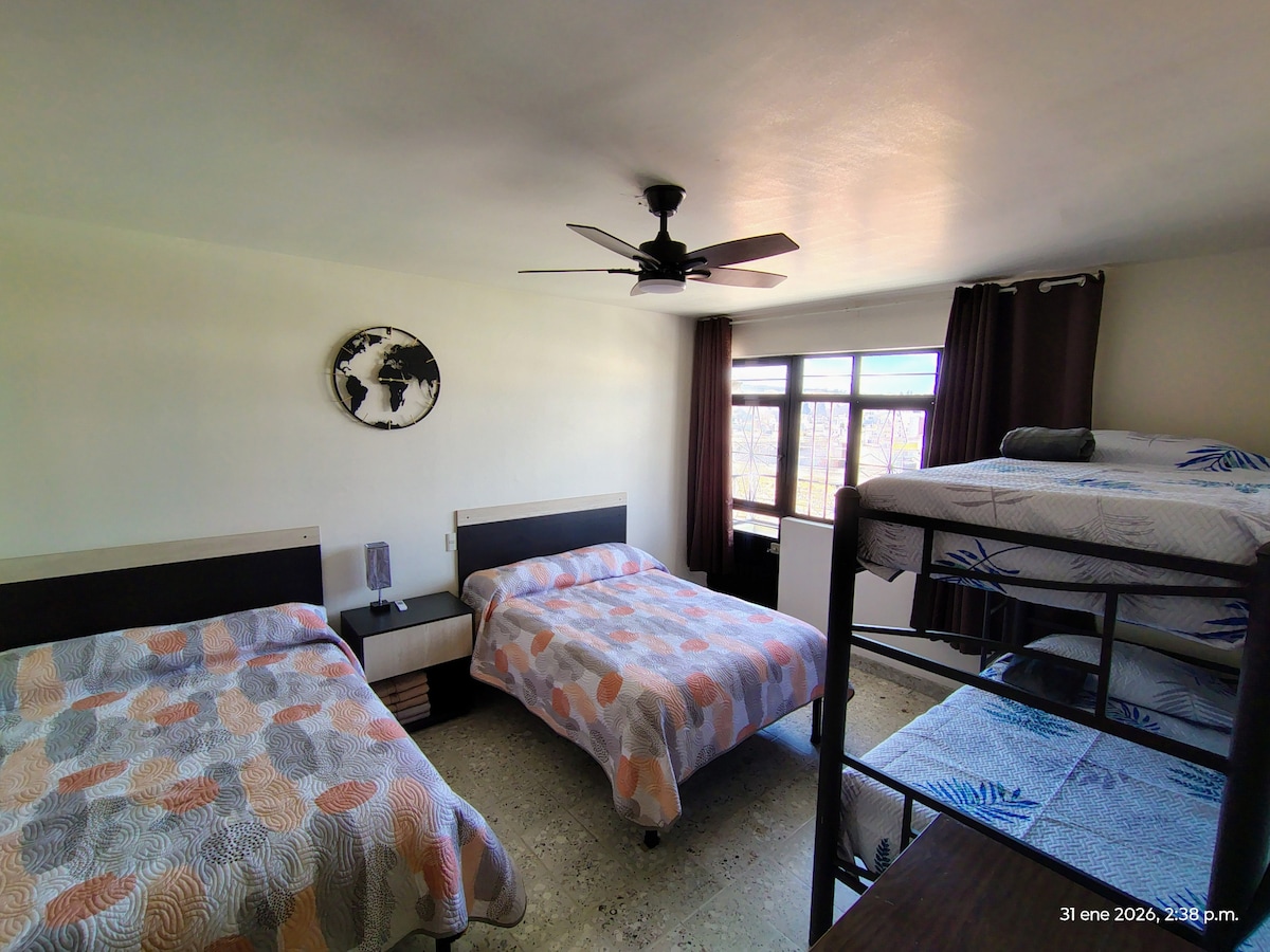 Depto en segunda planta, ideal para estancias largas de trabajo o vacaciones familiares. Disfrute de vistas panorámicas 360° desde la terraza: un oasis para relajarse tras una jornada. El espacio es seguro y totalmente equipado para 4 personas, con 2 habitaciones sala balcon y cocina/comedor completo (ideal para cocinar y ahorrar). Incluye Agua Caliente 24/7, WiFi rápido y Smart TV. Ubicación: En zona comercial activa con todos los servicios cerca. ¡Reserve su lugar cómodo y estratégico!