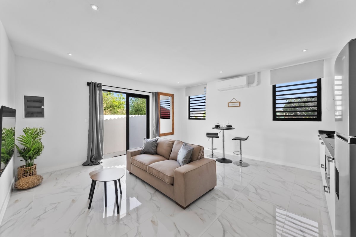 Spacious modern apartment in prime location, enjoy the short 7 minute walk to the beautiful beach, bars and restaurants. The apartment is totally private with your own entrance, living room, bathroom, bed room with AC, kitchen and balcony. The apartment is equipped with a new comfortable bed and a luxurious (sleeper) sofa. The balcony and garden invites you to sit down, take a swim or have a glass of wine whilst watching your favorite Netflix series on the Smart TV in the living and bedroom.