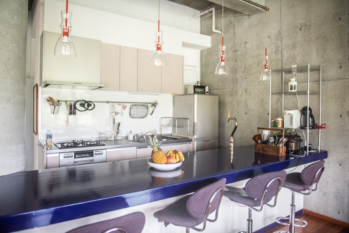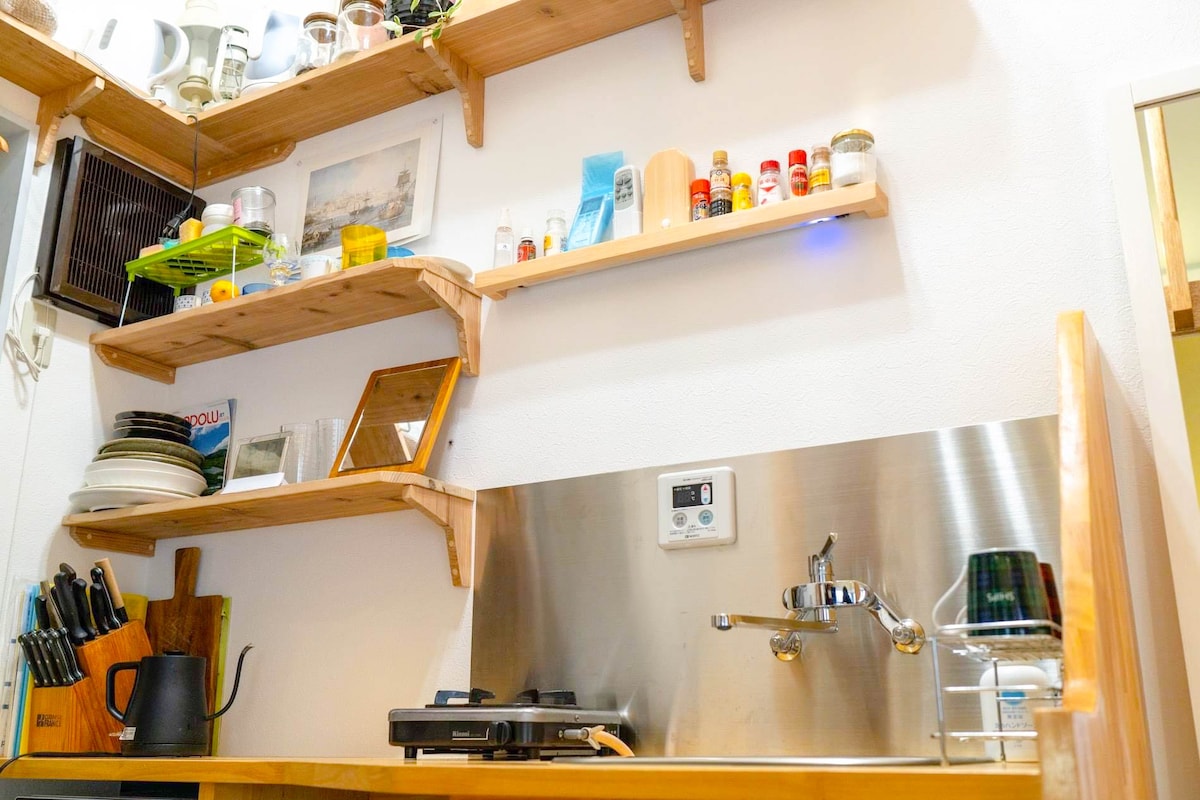 Situado a pocos minutos a pie de la estación de Hatagaya y la estación de Yoyogi-Uehara que te llevará a Shinjuku, Roppongi y Ginza en 4-16 minutos en tren. El loft está ubicado en un encantador barrio local cerca de la calle comercial donde puedes encontrar cafeterías, restaurantes, supermercados, farmacias, onsen (aguas termales japonesas)...etc. El loft es adecuado para estancias de hasta 4 huéspedes. Equipado con cama doble y 2 futones individuales con ropa de cama de calidad, inodoro privado con ducha, cocina pequeña y electrodomésticos.