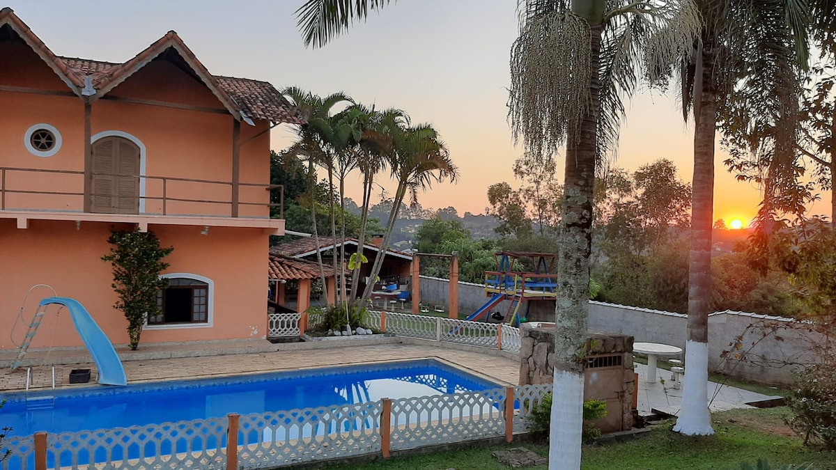 Venha viver momentos inesquecíveis neste lugar único .Linda chácara a apenas 40 minutos de São Paulo. Capacidade para 15 pessoas. São 5 quartos, Sala de estar,TV e Xbox ,sala jantar,cozinha equipada,espaço gourmet , churrasqueira,cooktop, geladeira, chopeira,TV com Wi-Fi e som ambiente,voltagem 220,lavanderia,piscina climatizada e tratada com ozônio e 2 vestuários. 1º andar : 1 suíte master, 2 quarto e Banheiro. Térreo: Sala de estar, com TV e Xbox, Sala jantar ,Cozinha equipada e 2 suíte.