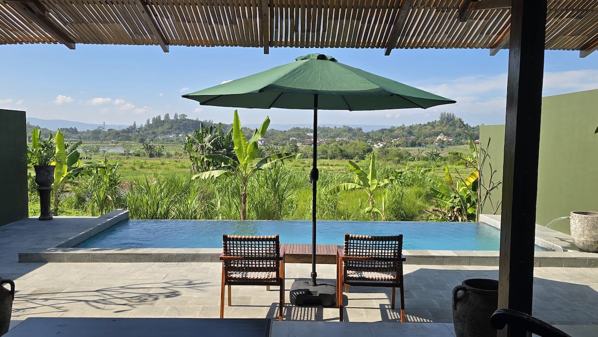 Stylish 2BR Villa • Infinity Pool • Rice Views