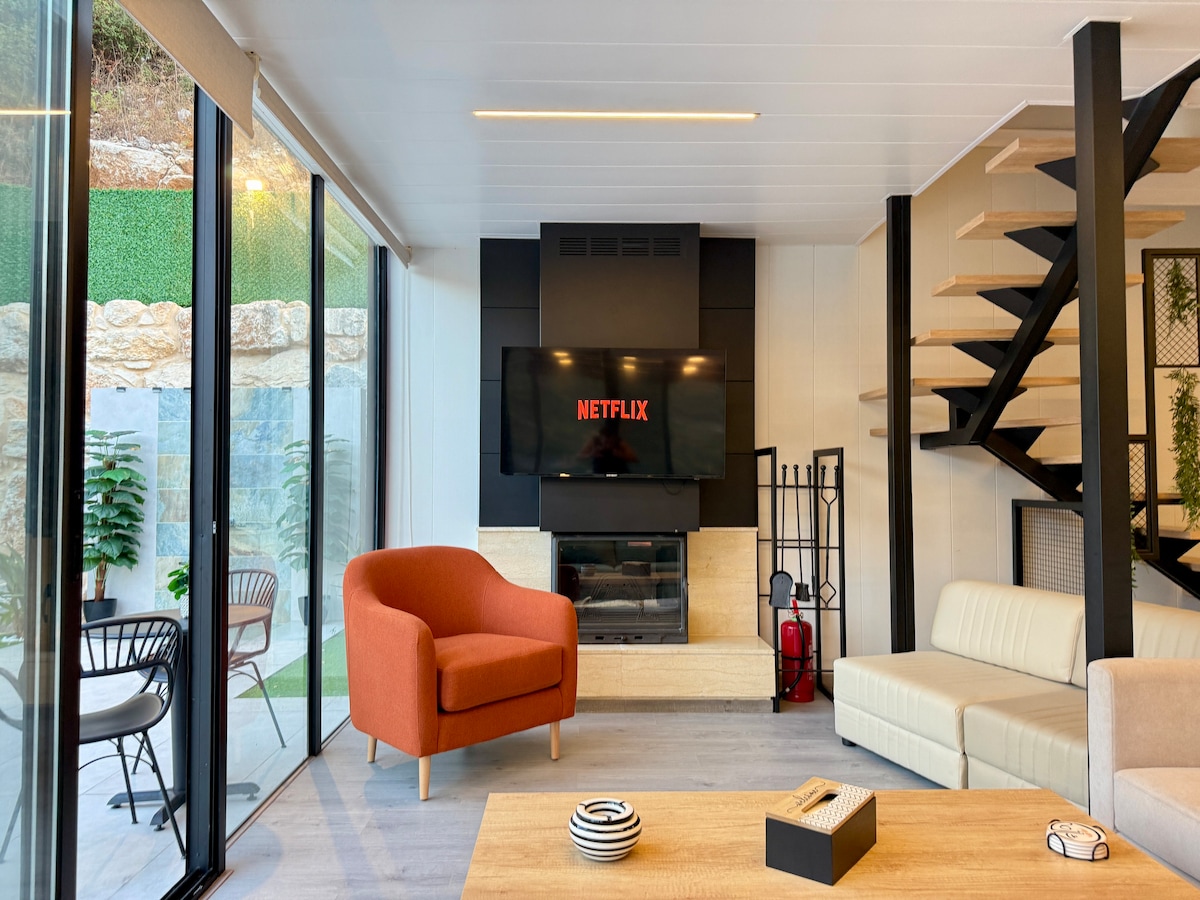 Escápate a Cherry Loft, un elegante dúplex de 2 dormitorios con impresionantes vistas al valle. Disfruta de una piscina privada, ducha al aire libre, fogata y parrilla para noches inolvidables bajo las estrellas. Relájate en el moderno salón, cocina en la elegante cocina o comparte historias junto al fuego. Con una mezcla única de comodidad, diseño y naturaleza, Cherry Loft es la escapada perfecta para familias, parejas y amigos que buscan lujo y tranquilidad. 🌿🏡🔥