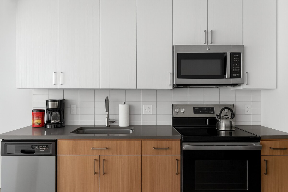 Relájate en este elegante condominio de 2 dormitorios, perfectamente situado en el centro de Birmingham. Disfruta de abundante luz natural y vistas impresionantes de la ciudad a través de amplias ventanas. El área de estar de concepto abierto proporciona un ambiente relajado con cómodos asientos y un televisor inteligente, que complementa la cocina elegante sin esfuerzo. Dos acogedoras habitaciones y un moderno baño ofrecen refugios tranquilos, y el Wi-Fi de alta velocidad te mantiene conectado. Con restaurantes y atracciones a pocos pasos, esta es la mejor escapada de la ciudad.