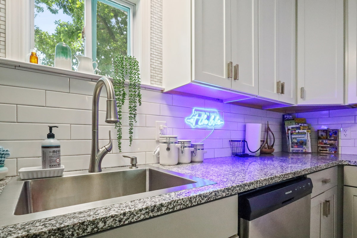 The Green Door Cottage es un lugar tranquilo para relajarse y desconectar. ¡Nos esforzamos por ofrecer un lugar limpio y divertido para que te sientas como en casa durante tus vacaciones! Hay mucho espacio para alojar de 6 a 8 personas, con un dormitorio principal con baño adjunto y otros 2 dormitorios que comparten un baño y medio. La parte más increíble de nuestra casa está afuera. Hay un porche trasero con parrilla de gas, jacuzzi, chimenea e incluso un campo de golf de disco de 9 hoyos.