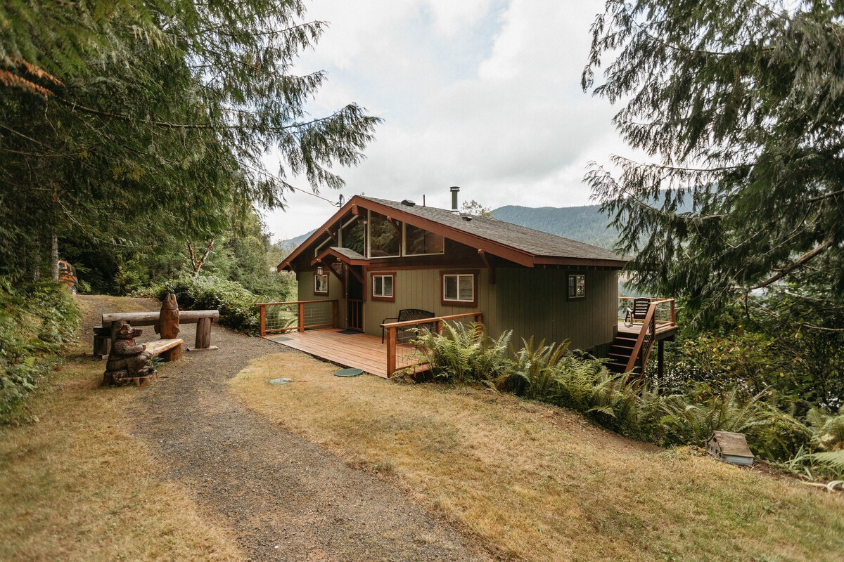 Fir Haven, ubicado a 15 minutos de la ciudad, se encuentra en 16 hectáreas privadas que han pertenecido a la familia durante generaciones. La casa de campo de 600 pies cuadrados tiene vistas a un gran campo rodeado de bosques, huertos, senderos, cañones y Siebert Creek. Es ideal para parejas y amigos cercanos, con 2 habitaciones propias y una acogedora sala de estar. **¡Solo a partir de 12 años por motivos de seguridad!** Explore la propiedad, visite el estanque y recorra los senderos que rodean el campo de 6 hectáreas y atraviesan hectáreas del impresionante bosque del noroeste del Pacífico.