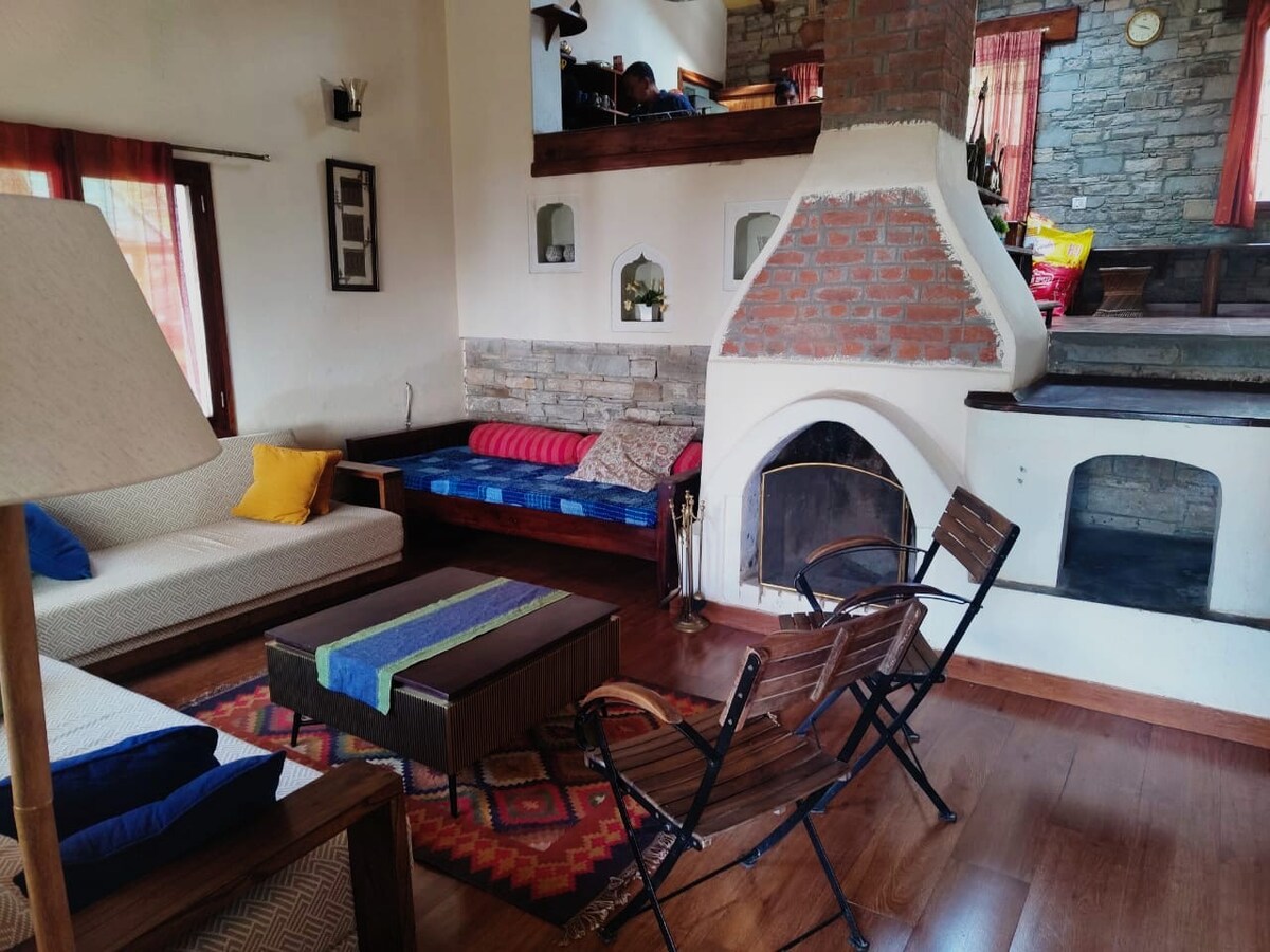 Villa privada de lujo construida con yeso de cal védico y deodar de origen local; diseñada para personas que saben lo que vale la quietud. Chef privado Kumaoni. Cocina de la granja a la mesa; todas las comidas preparadas frescas con ingredientes locales y de temporada. Desayuno incluido. Vía Láctea desde tu terraza de estrellas. Silencio del Himalaya, dentro del santuario de aves de Kilbury, un destino de observación de aves de renombre mundial cerca de Nainital. Personal de hospitalidad en el lugar. Wifi rápido. Camino pavimentado hasta la puerta; a 45 minutos de Nainital.