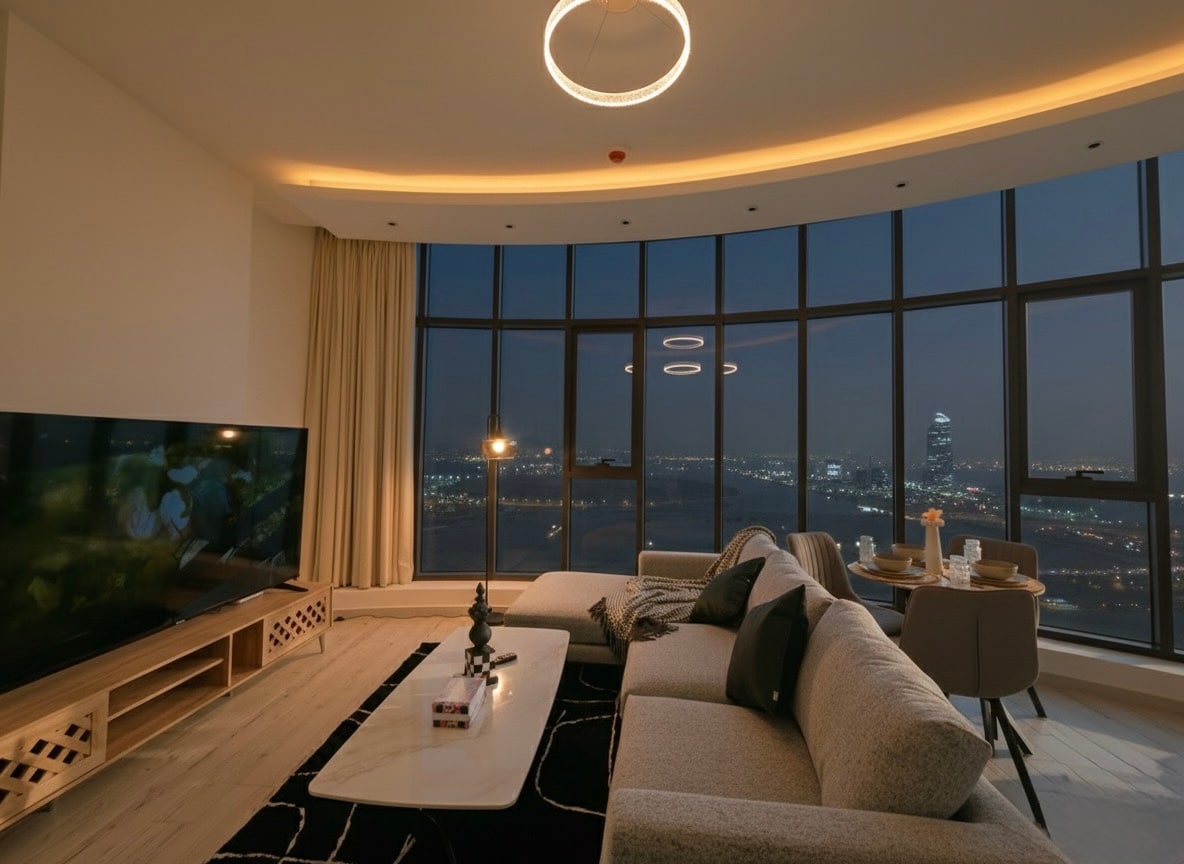 Elegante apartamento con jacuzzi y cine con vistas al mar en Al Khobar