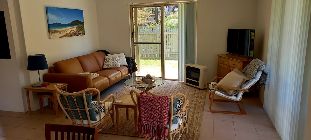 Un espacioso apartamento de 2 dormitorios con increíbles vistas de Shoal Bay Beach y a poca distancia a pie de Little Beach. Puedes ir caminando hasta el RSL para cenar o ir caminando a Nelson Bay para visitar el puerto deportivo. 2 camas tamaño queen, ropa de cama básica proporcionada, perfecta para parejas. También permito estancias de una noche. Aire acondicionado con sistema dividido recientemente instalado. Nota: La política de cancelación del anfitrión para este anuncio está configurada como estricta.