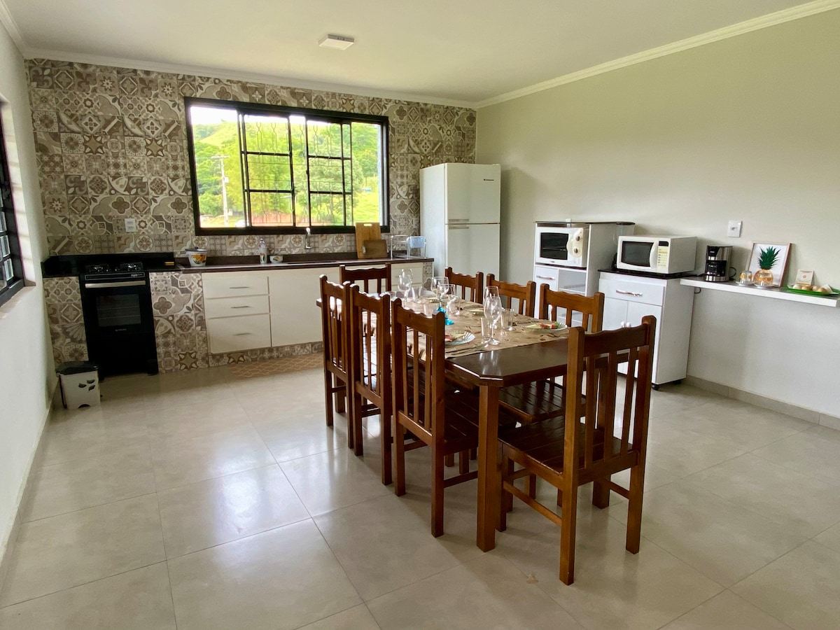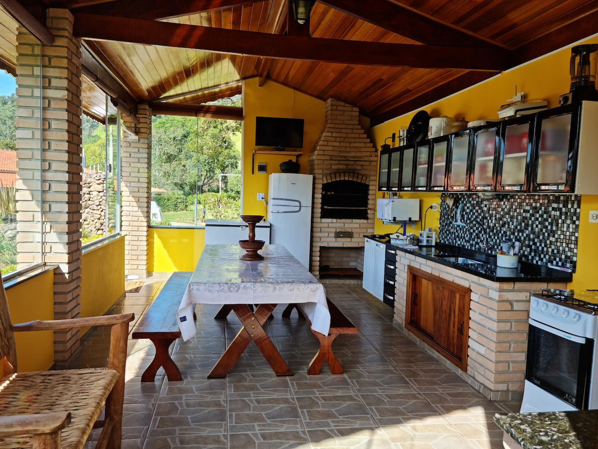 Sitio tomado de la ciudad con vistas a la montaña y mucha naturaleza alrededor. Lugar perfecto para descansar y contemplar la puesta de sol. Tiene un río con cascada dentro de la propiedad al que se accede por un sendero. Piscina grande, barbacoa y mesa de billar. 4 espacios de estacionamiento cubiertos. En la casa, el agua se calienta con duchas eléctricas y la cocina está bien equipada (además de la estufa de gas, hay una estufa de leña. La leña se vende por separado, R$ 35,00. Wifi por radio. velocidad 30Mb.