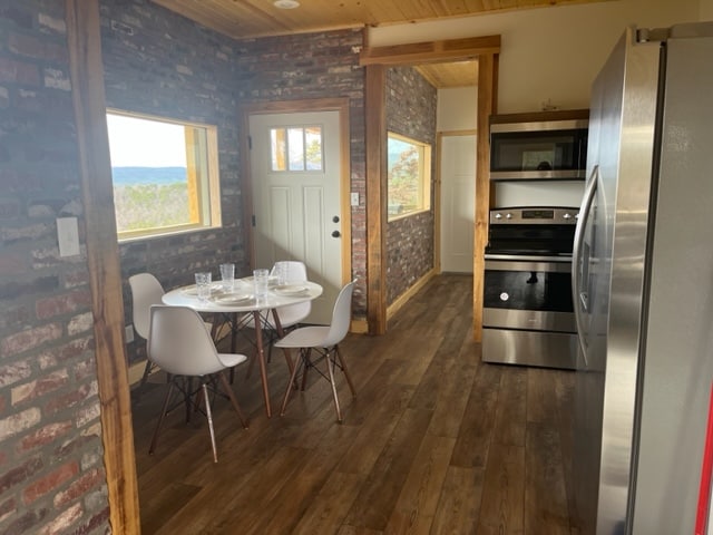 Los Hidden Hideaways son tu puerta de entrada a los montes Ozarks, el lago Buffalo y mucho más. Las ventanas panorámicas invitan a la belleza del mundo natural dentro de la comodidad de las cabañas. Observa la puesta de sol, pintando el cielo con tonos vibrantes. Los cielos nocturnos son cristalinos para contemplar las estrellas. ¡Los Hidden Hideaways podrían ser tu fin de semana romántico a solas o un viaje memorable para toda la familia!