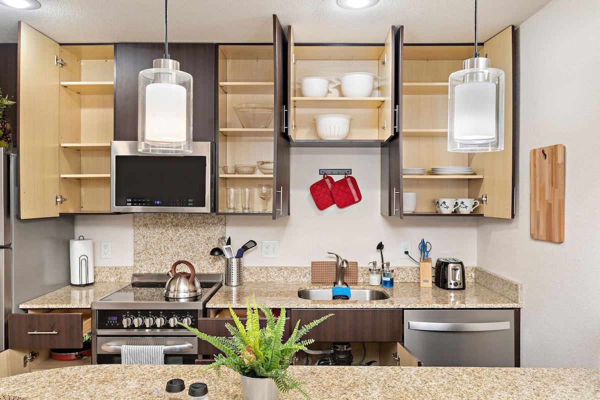 ¡Te damos la bienvenida a Overland Park Retreat en el corazón del casco antiguo de Overland Park! Este encantador alojamiento de 2 dormitorios y 2 baños combina comodidades modernas con un encanto atemporal, ofreciendo un refugio perfecto para cualquier viajero. Disfruta de la sala de estar de concepto abierto con muebles elegantes y luz natural. La cocina totalmente equipada cuenta con electrodomésticos de acero inoxidable y encimeras de granito. ¿Necesitas trabajar? Internet de fibra de alta velocidad está disponible en todo el alojamiento. ¡Relájate y transmite tus programas favoritos en la enorme televisión!