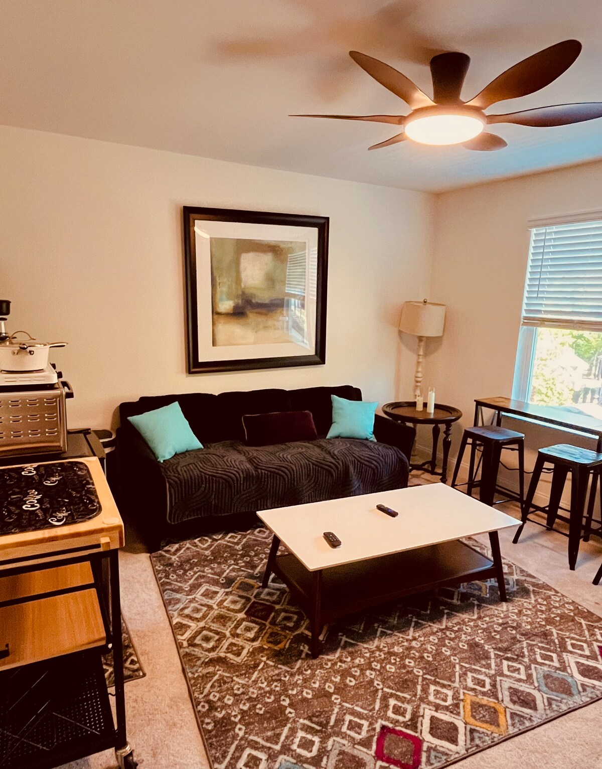 → Acogedora suite privada de un dormitorio. → Amplia sala de estar con cocina americana (sin fogones/horno ni fregadero). → Vallado en el patio trasero. Entrada → privada sin llave con zona de asientos exterior. Internet/wifi de→ 1 Gbit. → Escritorio disponible para trabajar. → Colchón hinchable disponible previa solicitud. Servicios de→ streaming (Netflix, Disney+, HBO, HULU). A → 10 minutos del centro de Raleigh. A → 6 minutos de la Universidad Estatal de Carolina del Norte. A → 5 minutos del mercado de agricultores del estado de Carolina del Norte. A → 20 minutos del aeropuerto RDU y del parque Research Triangle.