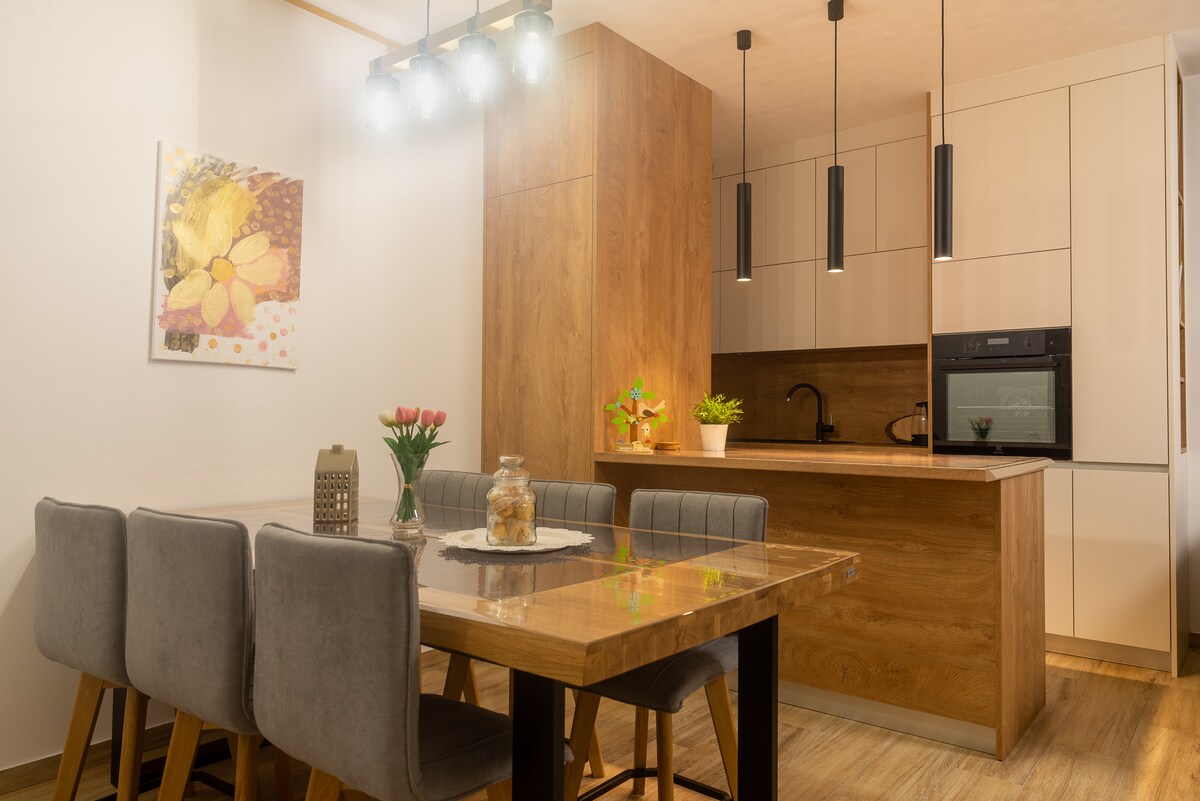 Relájate en este apartamento de decoración moderna en el centro de Osijek, ubicado en un edificio de nueva construcción. El apartamento está lujosamente equipado y tiene 4 estrellas. Se encuentra en el centro más amplio de Osijek, el centro (plaza) está a unos 700 metros a pie. El apartamento tiene su propio aparcamiento privado, que está separado por una rampa y se encuentra detrás del edificio. El balcón ofrece vistas a la concatedral. - ¡Propietario de la etiqueta de estancia segura en Croacia! - ¡Internet inalámbrico superrápido!