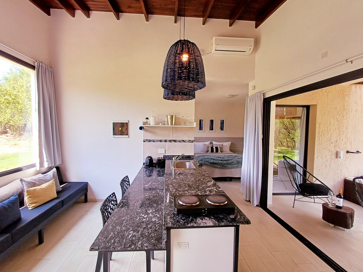 La cabaña Hornero Copetón pertenece a un complejo boutique exclusivo para parejas, inmerso en un entorno natural con vista a las sierras, flora autóctona y gran variedad de aves. Ideal para quienes buscan descanso, privacidad y contacto con la naturaleza. A pocos minutos encontrarás almacenes, restaurantes y los principales puntos turísticos de la zona. Perfecto equilibrio entre calma, comodidad y ubicación.