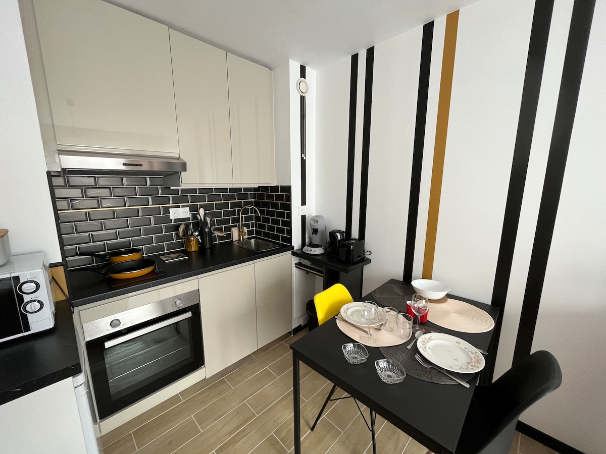 Bienvenidos a este encantador apartamento completamente renovado en una residencia del siglo XIX. Le encantará su decoración y sus comodidades. Ideal para una o varias noches de relax. Tanto si viaja solo como en pareja, no hay duda de que pasará un buen rato. A su disposición: - una sauna de 2 plazas - un jacuzzi para 2 «cara a cara» También le gustará la TV conectada, la ducha a ras de suelo y todos los pequeños detalles que le esperan.